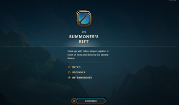 Co-op vs. AI is available on Summoner's Rift. There are three difficulties to choose from: Intro, Beginner, and Intermediate. Players can queue lonely or in groups. The Commencement Win of the Solar day mission is available, and normal and ranked MMR are unaffected.